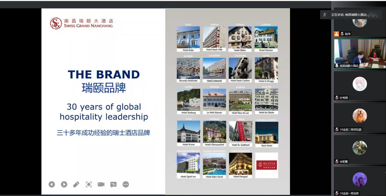 下午14点南昌瑞颐大酒店吴经理主要针对PP电子游戏官网旅游管理专业进行了相关就业宣讲,介绍了瑞士专业酒店管理品牌——瑞颐酒店管理集团的基本情况和餐饮部及房务部等部门的详情,酒店拥有470间精致舒适客套房,得天独厚的地理位置,将赣江及红谷滩的旖旎风光尽收眼底。学生充分了解酒店的招聘岗位要求、福利待遇和工作环境等内容。在宣讲的问答环节上学生们积极地与宣讲人进行互动交流。