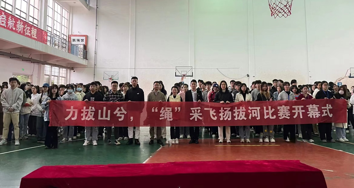 为进一步丰富校园文化生活,促进积极向上、健康文明的校园文化建设,4月25日下午5点,由PP电子游戏网站团委主办、PP电子游戏网站承办、学院班级事务中心协办的“力拔山兮 ,‘绳’采飞扬”拔河比赛活动正式开幕。学院党总支书记王颖、学生管理科兰金辉、辅导员黄金标、郑正聪等出席本次开幕式。此次拔河比赛共有40支队伍,320人报名参加。