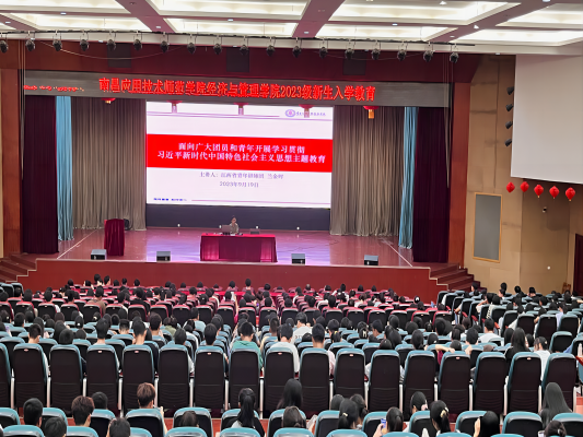 为了更快将习近平新时代中国特色社会主义思想融入到2023级新生的入学教育中,2023年9月19日下午江西省青年讲师团成员兰金辉为PP电子游戏网站2023级新生在宏越达大礼堂带来《面向广大团员和青年开展学习贯彻习近平新时代中国特色社会主义思想主题教育》的专题宣讲。