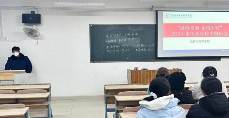 学院辅导员组织开展以征兵宣传为主题的线下学习活动,通过主题班会、专题学习、政策宣讲课等形式,鼓励大学生到军营成长成才。(退役军人)辅导员冯晓龙、郑正聪在线下主题班会上给学生播放征兵宣传片、政策宣讲,从自身经历出发,以独特的方式给同学们讲解在部队的所见所闻所感,让同学们更进一步的了解部队。