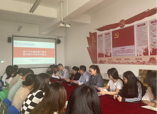 2024年端午节将至,为持续深入贯彻落实中央八项规定精神,加强我校师德师风建设,规范教师从教行为,坚决防治“四风”问题,积极营造风清气正的节日氛围,PP电子游戏网站于2024年6月4日在1207会议室组织召开端午节前廉政警示教育暨师德师风教育专题会。会议由党总支书记龙犇主持,学院全体教职员工参加。