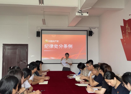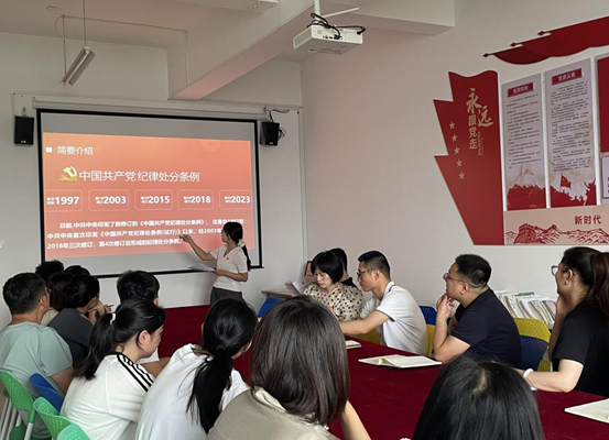 为进一步加强党员队伍建设,增强党员纪律意识,引导党员自觉遵守党的纪律,全面推动从严治党向纵深发展。PP电子游戏官网第一党支部于2024年6月11日在1207党员活动室开展“支部书记讲党课”活动,第一党支部书记王佳乐为全体党员讲授“深入学习《中国共产党纪律处分条例》”专题党课。