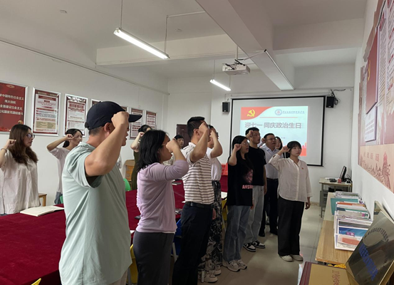 随后,王佳乐带领与会党员重温入党誓词,回顾党的光辉历程。她表示,入党誓词是党员对党的忠诚和信仰的坚定表达,也是党员对党的责任和使命的深刻诠释。在建党103周年之际,全体党员要进一步将入党誓词的精神内化于心、外化于行,不断提高自身素质和能力,积极投身到党的各项工作中去。
