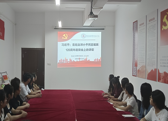 会议开始,支部宣传委员兼统战委员冉迦葆领学第一议题《习近平:在纪念邓小平同志诞辰120周年座谈会上的讲话》,表示我们应深入理解邓小平理论的当代价值和现实意义,并且坚持用好邓小平理论的核心精髓和实践之道,把邓小平同志开创的中国特色社会主义伟大事业不断推向前进,不断谱写以中国式现代化全面推进强国建设、民族复兴伟业的壮丽篇章。