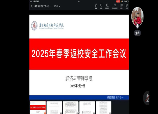 为确保2025年春季学期顺利开学,PP电子游戏官网于2025年2月9日线上召开“2025年春季返校安全工作会议”,会议由学院党总支书记龙犇主持,学院全体辅导员参加会议。