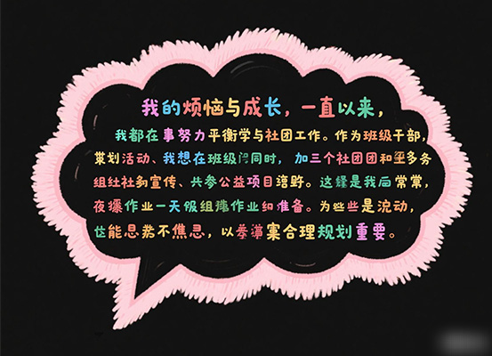 活动期间累计收到投稿70份,经统计,高频词集中在“学业焦虑(37%)、室友关系(21%)、未来迷茫(18%)”等领域。