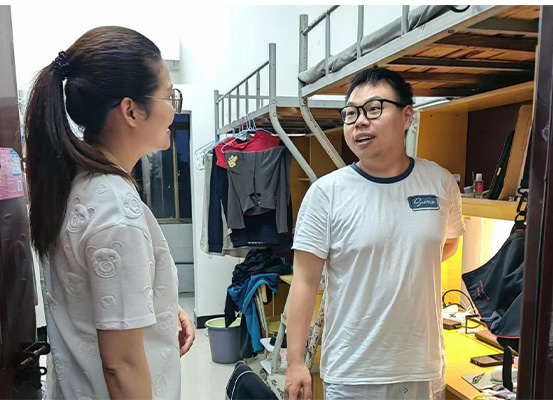 每到一间宿舍,老师们都与毕业生亲切交谈,详细询问他们的答辩准备进度、论文修改情况以及未来职业规划。面对老师们的关心,同学们纷纷敞开心扉,分享自己在准备答辩过程中的收获与困惑。老师们认真倾听,并结合自身经验,为同学们提供了针对性的建议和指导,鼓励大家保持积极心态,以最佳状态迎接答辩挑战。
