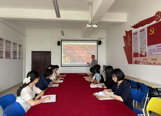 随后,袁江波同志系统阐释中央八项规定核心要义,聚焦“精简会议活动”“改进调查研究”“厉行勤俭节约”等具体要求,深刻剖析其对深化党风廉政建设、提升党政机关公信力、密切党群关系的时代价值。党课强调,中央八项规定是推进全面从严治党的重要抓手,在密切党群干群关系、引领社会风尚、助力国家治理现代化等方面具有战略意义。会议要求全体党员教师应将八项规定精神贯穿教育教学全过程:以精心备课、高效授课为标准,杜绝形式主义倾向;以清正教风为引领,严守师德底线,自觉抵制不正之风,筑牢廉洁从教思想防线,为落实立德树人根本任务夯实作风保障。