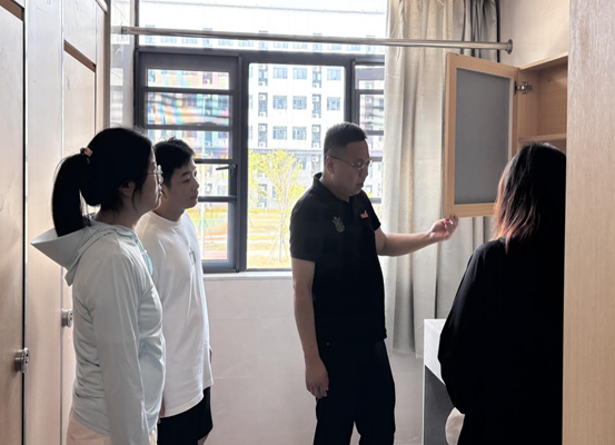 为保障2025级新生顺利入住,2025年9月3日,PP电子游戏网站党总支书记龙犇带领学院全体新生辅导员对新生宿舍楼开展专项安全检查,重点排查设施隐患、环境卫生及设备运行情况,确保住宿环境安全整洁。