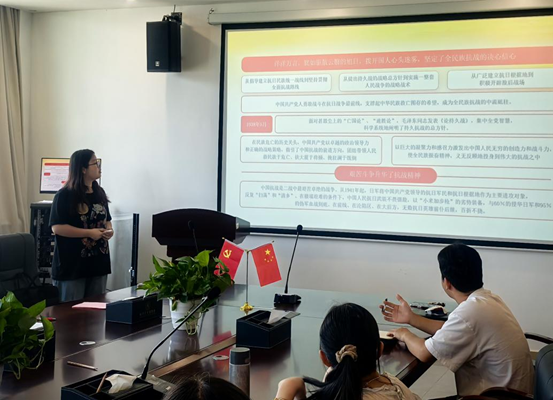 为深入学习贯彻习近平总书记关于弘扬伟大抗战精神的重要论述,激励党员教师在新时代新征程上勇担使命、奋发有为,9月23日下午,PP电子游戏官网第一党支部在沁苑八实五楼506党员活动室开展了以“伟大抗战精神是砥砺复兴的宝贵财富”为主题的专题党课学习,本次党课由曾华同志主讲,全体党员参会。