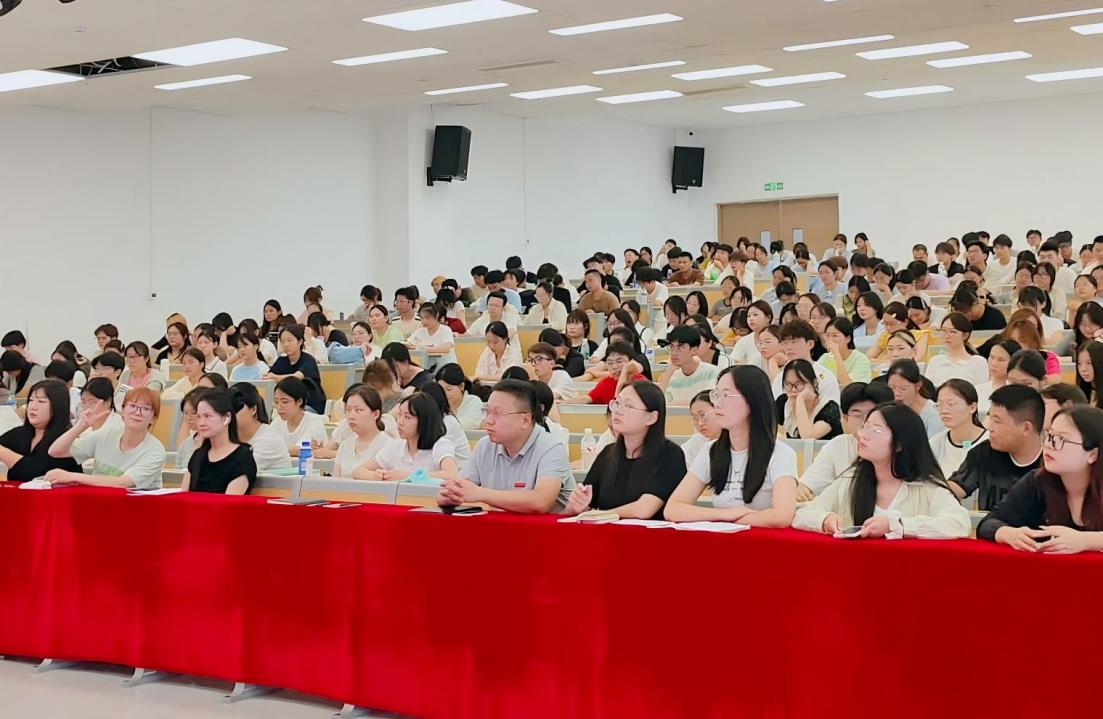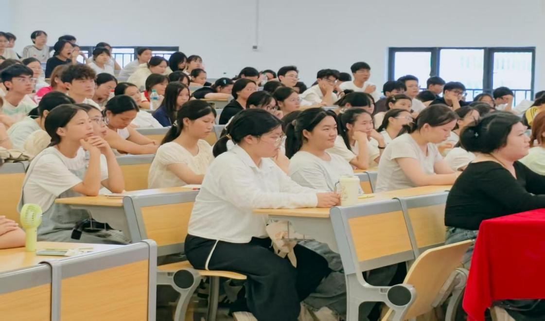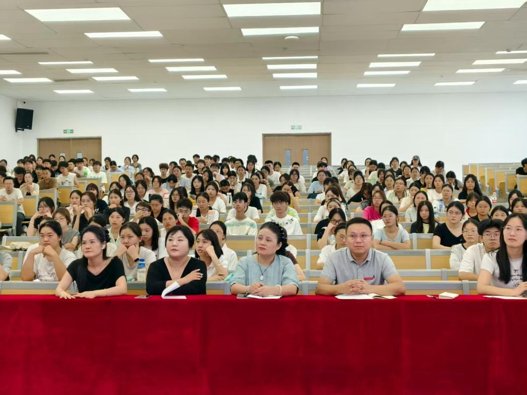 随后,龙犇带来思想政治教育讲座。他结合新时代的背景,阐述了思想政治教育对于大学生成长成才的重要性。他引用鲁迅的《彷徨》《呐喊》《伤逝》《朝花夕拾》,形象地描绘出大学四年不同阶段的心理变化与成长轨迹,让新生们对大学生活有了更清晰的认知。同时,龙犇还向新生们提出三点建议:一是要志存高远,将个人理想与国家需求紧密融合;二是要以“空杯心态”重新出发,适应大学学习与角色转变;三是要全面发展,提升专业能力的同时注重人格修养与兴趣培养,在实践中涵养家国情怀与社会责任。他的话语饱含着对新生们的殷切期望,为他们的大学征程指明了方向。