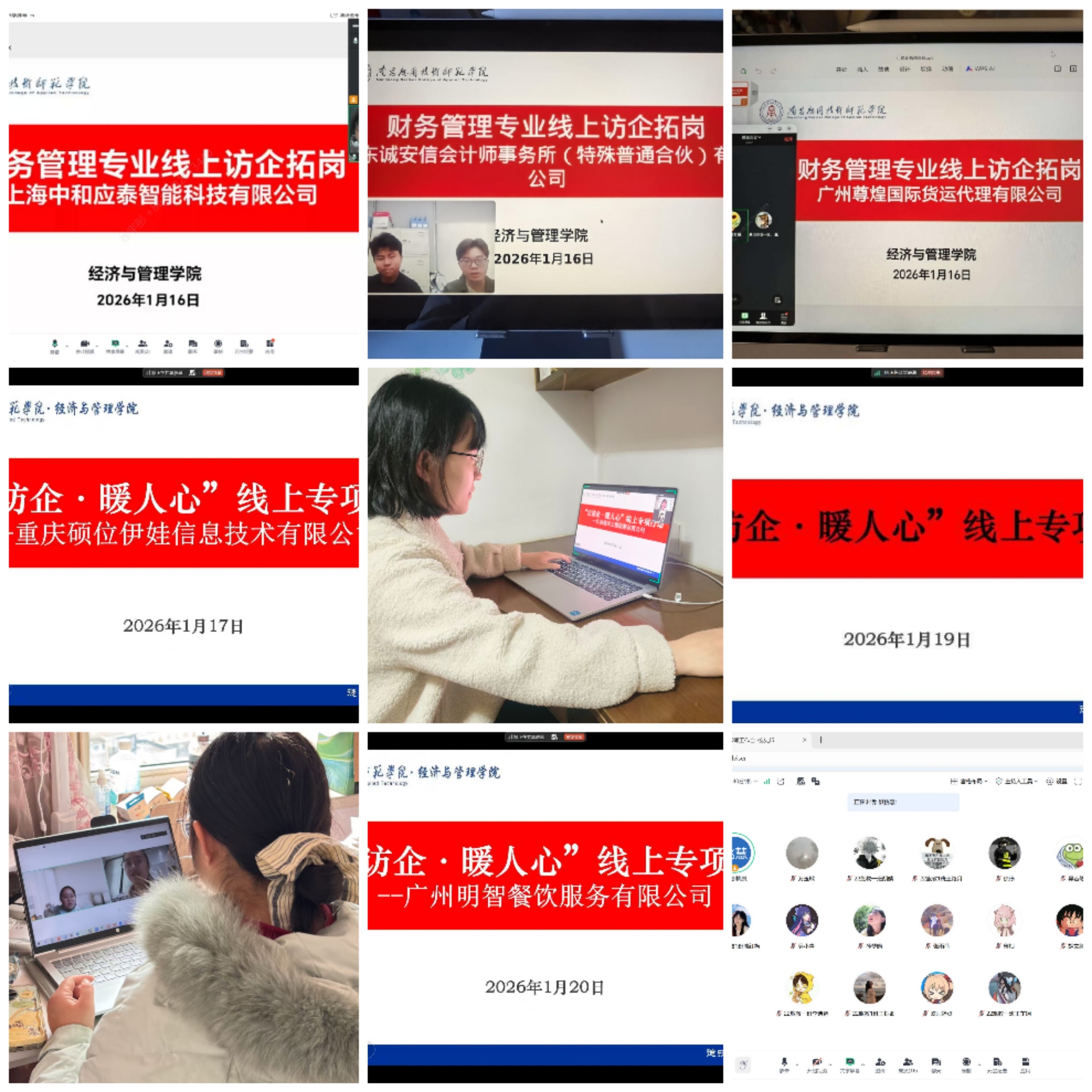 面对当前就业形势,学院坚持“走出去”与“请进来”相结合,组织毕业生指导老师、毕业班辅导员通过线上线下多渠道开展企业走访与岗位拓展。寒假期间,教师团队主动对接地方重点企业、行业优质单位及校友企业,深入了解人才需求趋势、精准推介毕业生资源。截至目前,已累计走访联系企业七十余家,拓展有效就业岗位一百二十余个,涵盖数智财经、国际贸易、文化传媒等多个领域,为毕业生求职提供了丰富选择。