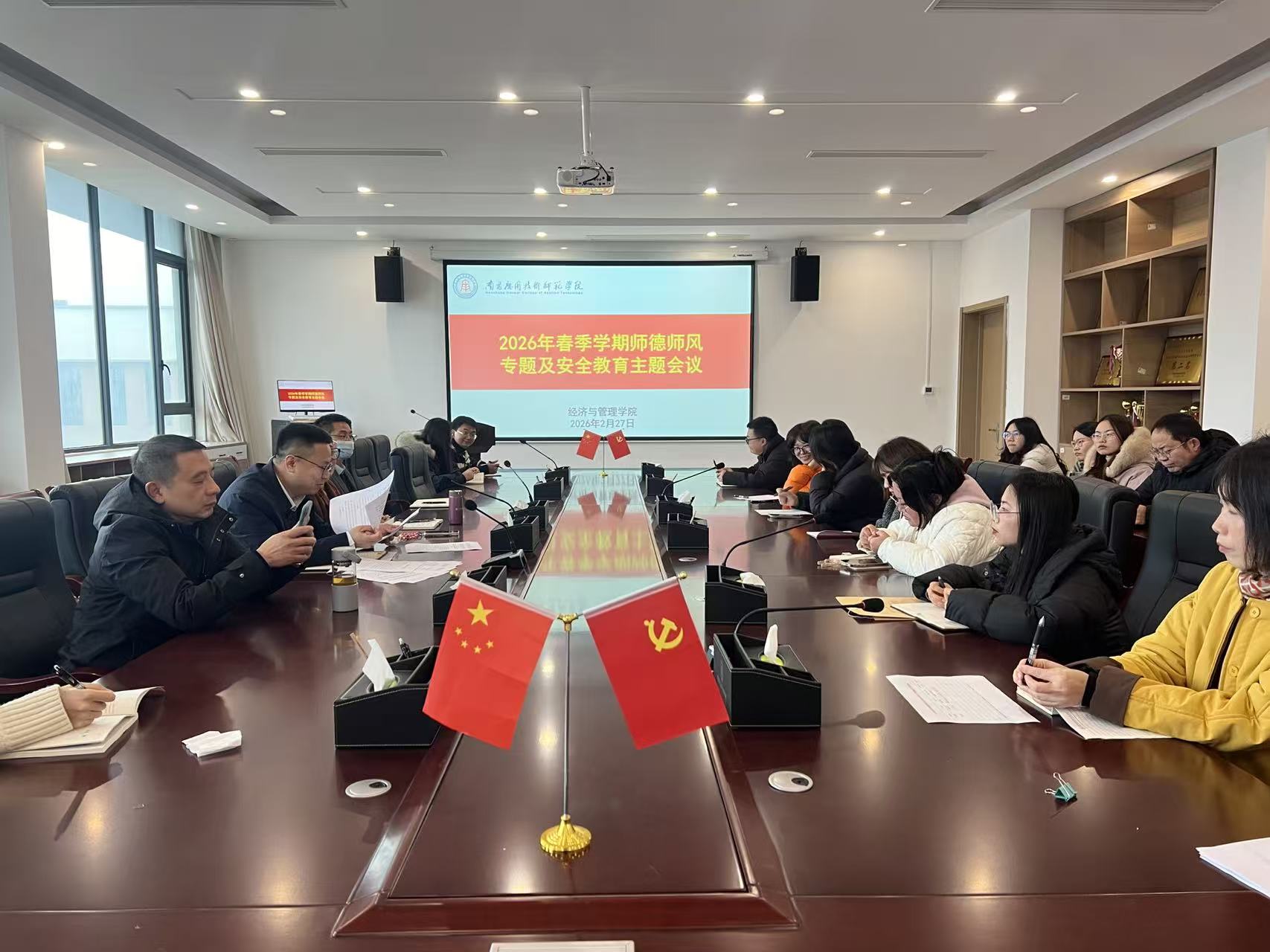 会议重点围绕师德师风建设和校园安全管理两大主题展开部署。会上,学院组织全体教师集中学习《新时代高校教师职业行为十项准则》《PP电子游戏网站教师师德失范行为处理办法》等制度文件,要求全体教师常态化学习、逐条逐句深学细悟,真正把师德规范从外在要求转化为内在自觉。