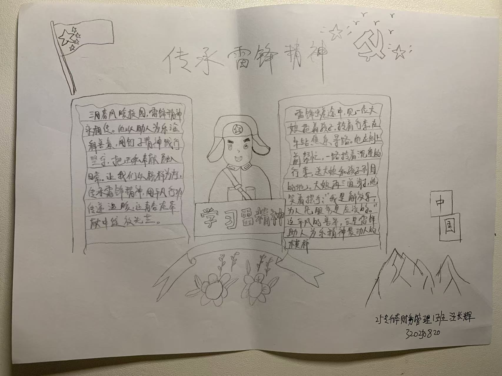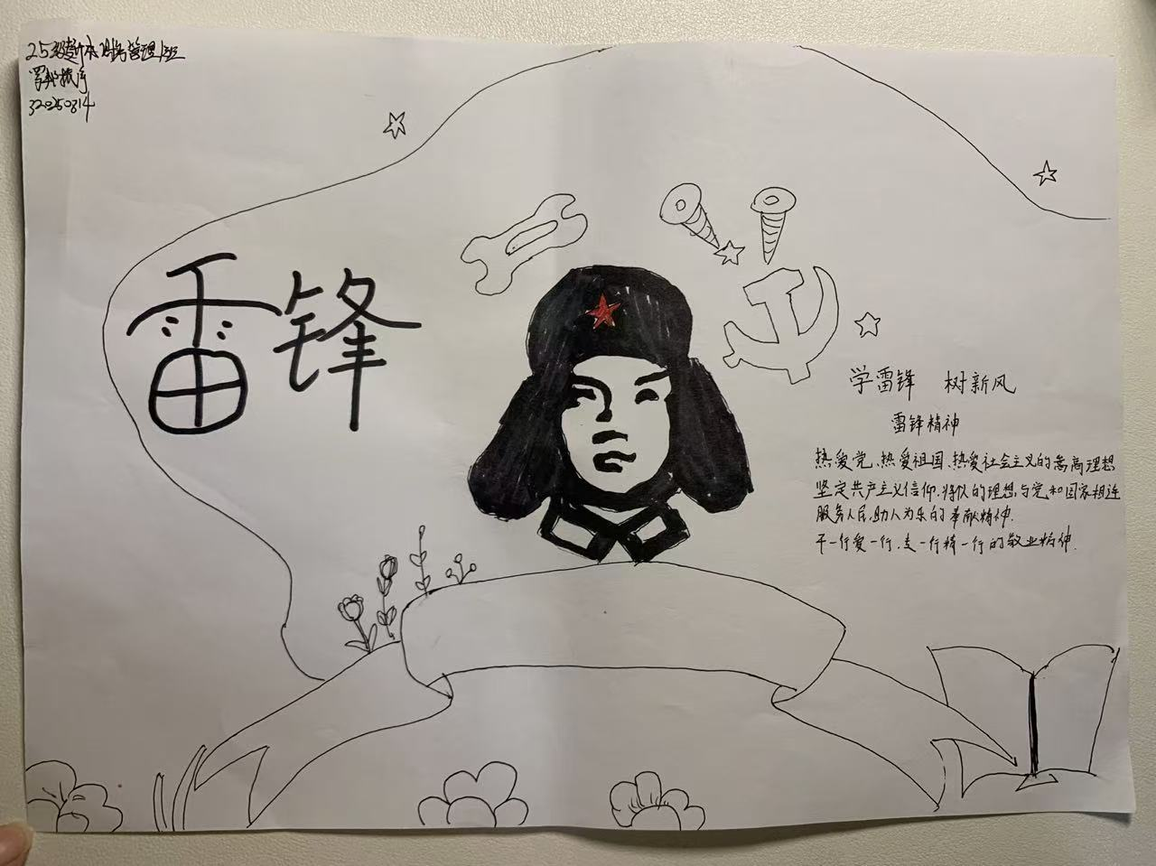 本次活动通过书法、绘画、手抄报创作与展览相结合的形式,引导学院全体学生深入学习雷锋事迹,深刻领悟新时代榜样精神的内涵。活动中,同学们积极参与、潜心创作,以笔墨传情、以创作践行,将雷锋精神融入每一幅作品、化作具体行动,不仅展现了自身的文化艺术素养,更以实际行动传承榜样力量。