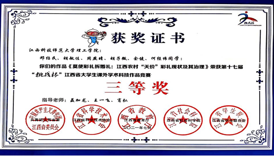 为了提升学生的综合能力,聂加龙老师在承担繁重教学任务的情况下,牺牲休息与健康等指导学生参加中国“互联网+”大学生创新创业大赛。一份付出一份收获,他指导学生申报的《精准扶贫之“智扶”》在第四届江西省“互联网+”大学生创新创业大赛中荣获铜奖。