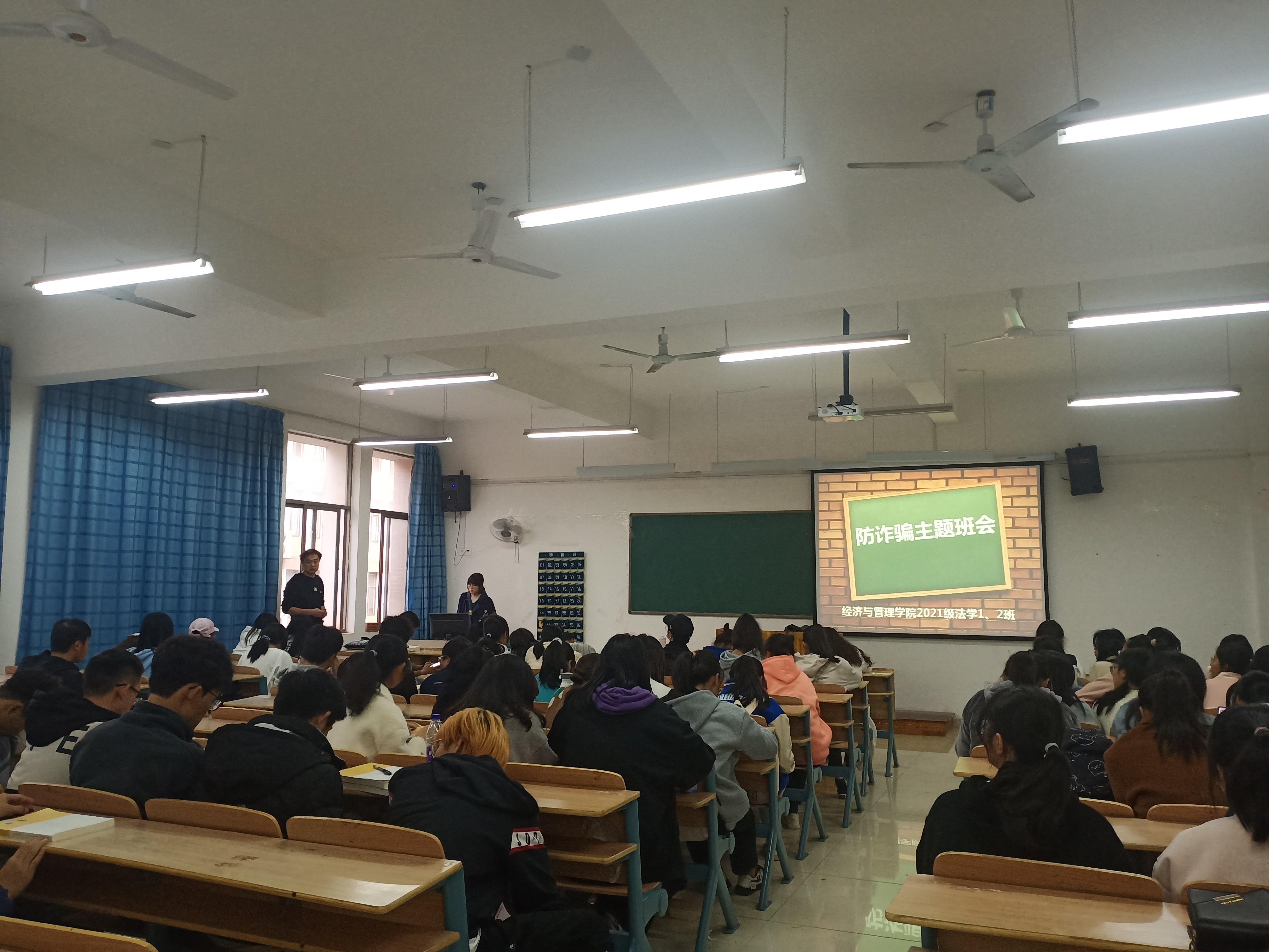 近期,电信诈骗在校园内愈演愈烈,大学生是电信诈骗的主要对象。为提高PP电子游戏官网学生的安全防范意识,杜绝校园内外诈骗情况的发生,有效保护同学们的财产安全。PP电子游戏网站2021级法学1、2班于2021年11月18日下午开展了“铸就防骗长城,擦亮识骗亮眼”防电信诈骗主题班会。