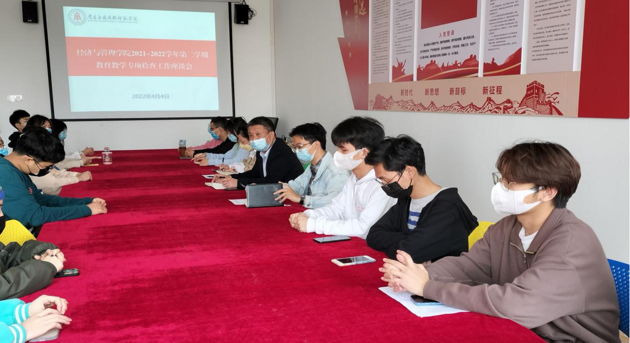 为深入了解学校目前教育教学,尤其是线上教学情况,进一步巩固线上教学质量,加强教学各环节管理,促进教学规范化管理,及时发现和解决教学工作中出现的问题,提高教学管理水平和教学质量,PP电子游戏网站于4月4日在学院1207会议室举行教育教学专项检查学生座谈会。会议由院长王一飞主持,党总支书记王颖,学生管理科兰金辉和25位各专业学生代表参加了此次座谈。