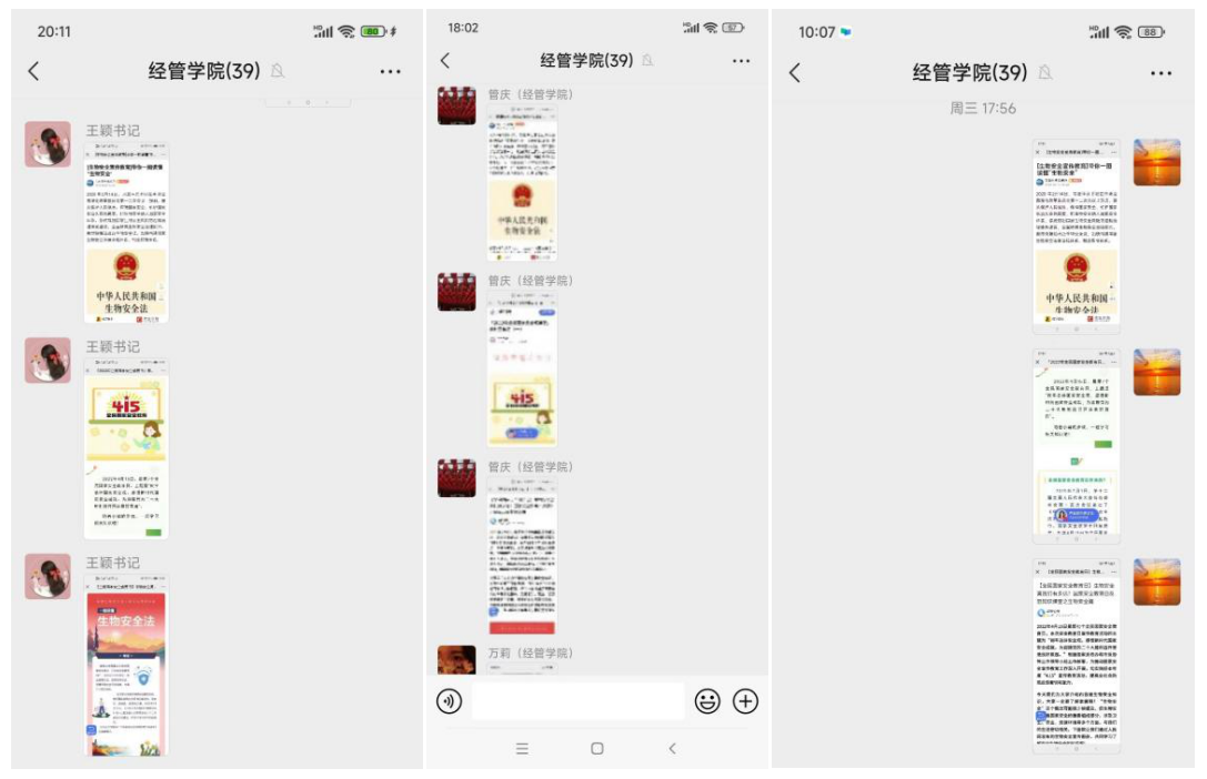 为落实学校党委宣传部《关于组织开展2022年全民国家安全日暨生物安全教育周活动的通知》的文件要求,加强师生国家安全教育,提高安全防范意识,PP电子游戏网站于2022年4月13日--15日组织全院师生开展生物安全教育周活动。全院师生通过微信群、QQ群学习党委宣传部推送的相关学习资料,并且把学习截图和学习感受上传到工作群。