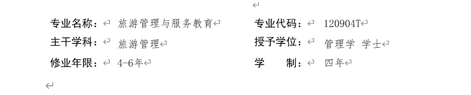 1.主干课程:旅游学概论、旅游接待业、旅游消费者行为、旅游目的地管理、旅游经济学、旅游规划与开发、旅游法规、旅游服务与礼仪、旅游英语、职业教育学、职业教育心理学、教师职业道德、教学系统设计、课程设计与开发、现代教育技术及应用等。